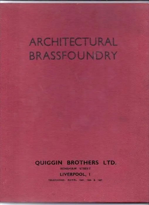 ARCHITECTURAL BRASSFOUNDRY; Quiggin Brothers Liverpool, 62 pgs. hard bound
