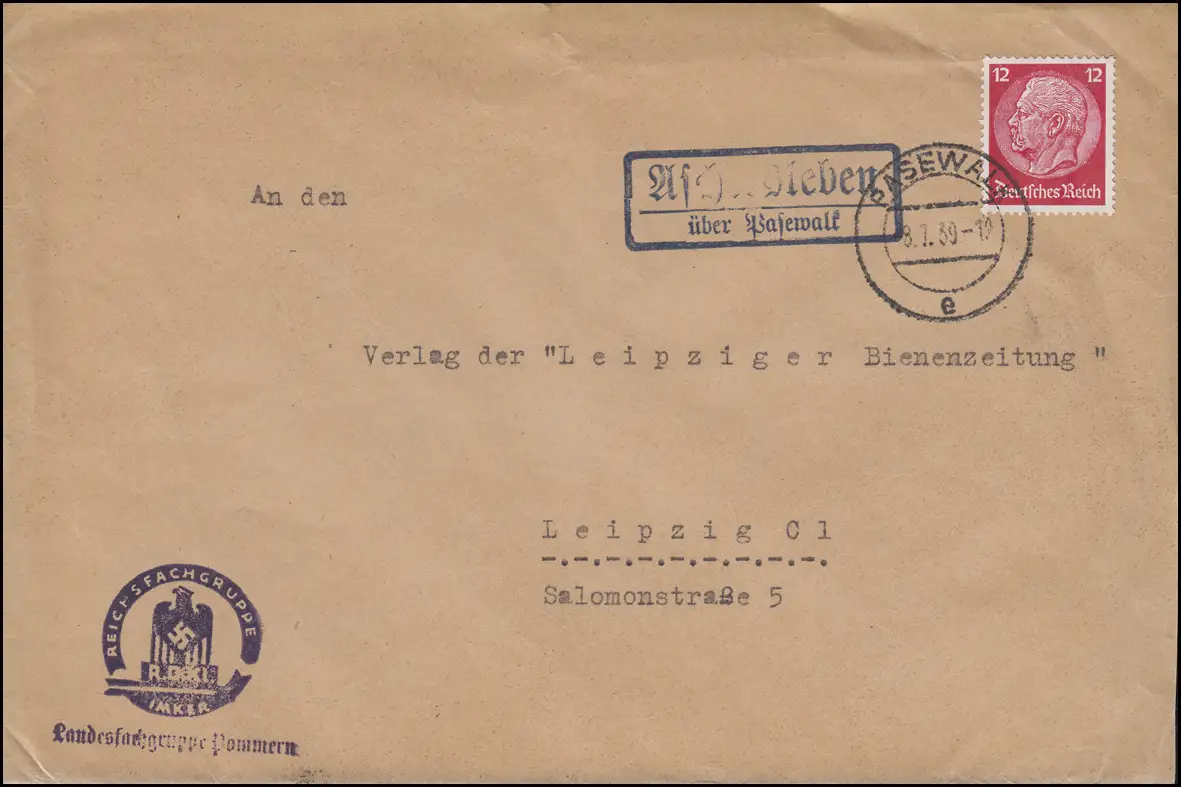 ASCHERSLEBEN PASEWALK 8.7.39 Fachgruppe Imker an Bienenzeitung in Leipzig