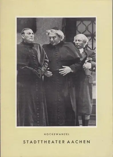 Aachen. - Stadttheater. - Elisabeth Miltrup (Hrsg.). - Christof Kaergel: Hockewanzel. Programmzettel des Stadttheaters Aachen. Erstaufführung des Stücks von Christof Kaergel. Inszenierung: Hans Schalla, mit u. a.: Heinrich Wildberg, Arno Ebert, Erich Weil