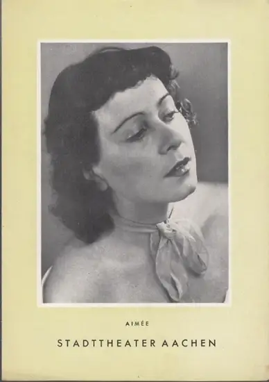 Titel: Aimee. Programmzettel des Stadttheaters Aachen. Erstaufführng des Stückes von Heinz Coubier. Inszenierung: Hans Schalla, mit Katharina Berger, Erich Weiland, Hans Albert Martens, Kurt Haars. Weiterer Inhalt: H. Coubier - Lebenslauf eines Komödiendichters / Episode aus dem Leben der Aimee