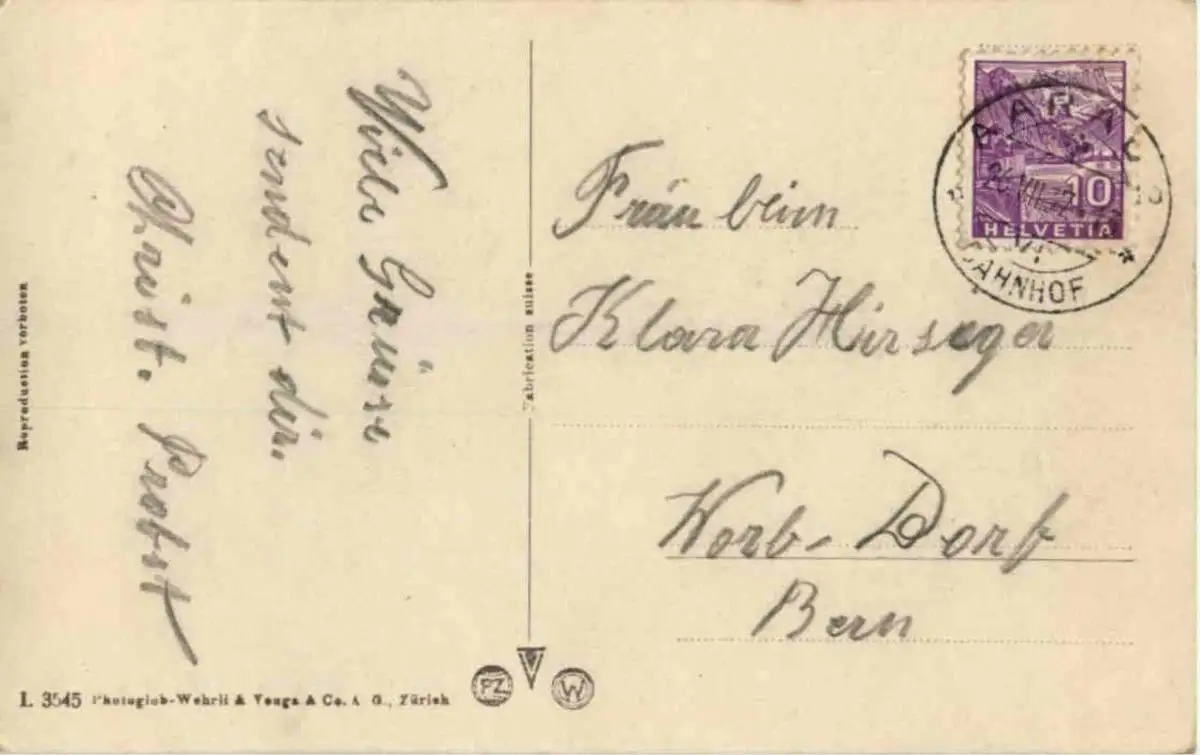 Danke. Alles Bestens. Können Sie mir allenfalls mitteilen, aus welchem Jahr die Postkarte stammt? Besten Dank.