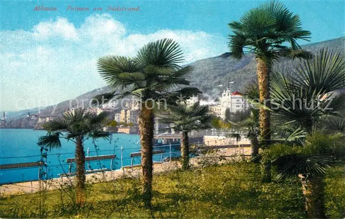 Abbazia_Istrien Palmen am S?dstrand Abbazia_Istrien postalisch nicht gelaufen bis 1920 Erhaltung siehe scans [LiesaD40] LiesID40
