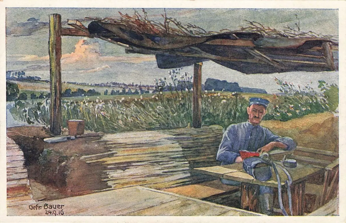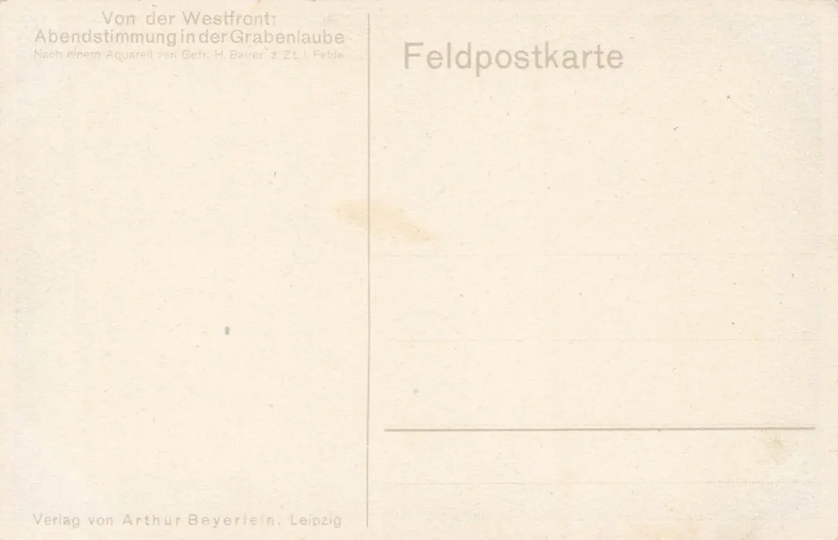 Abendstimmung in der Grabenlaube Von der Westfront Patriotika Postkarte AK