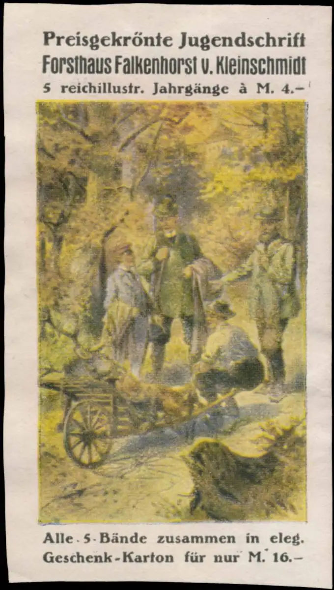 Forsthaus Falkenhorst v. Kleinschmidt, Preisgekrönte Jugendschrift, Jagd, Größe/Zustand: 8x4 , beschnitten, Rückseite fleckig sonst guter Zustand, Original alte Reklamemarke die seinerzeit für die Werbung benutzt wurde