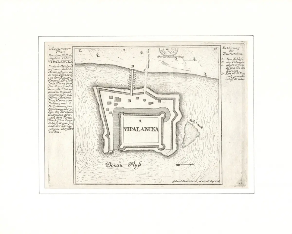Accurater Plan von dem wolbefestigten Schloss Vipalancka. Befestigungsplan aus der Vogelschau. Original-Kupferstich, Bodenehr, Gabriel