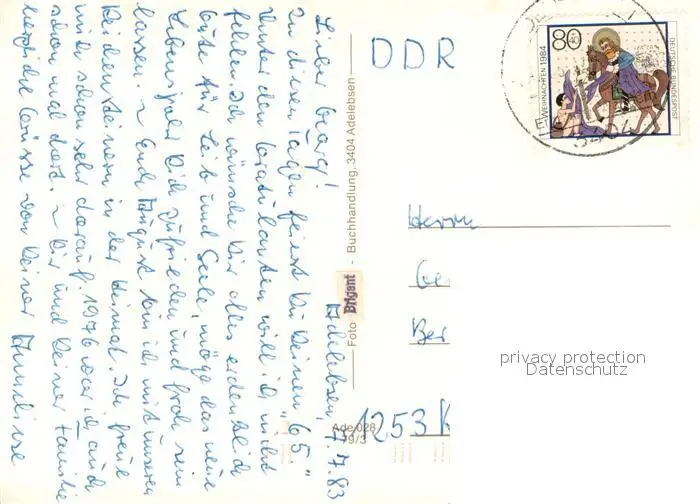 Adelebsen Blick zur Burg Rathaus Fachwerkhaeuser Kirche Reit- und Turnierplatz Alma Luisenstift Adelebsen postalisch gelaufen 1983 Erhaltung siehe scans [FriedD77] Frierer