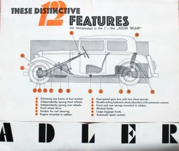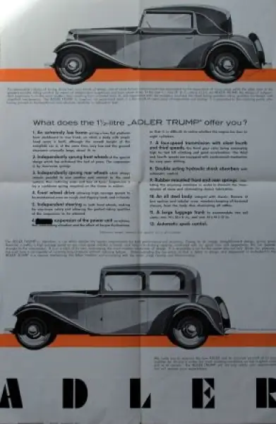 Adler Trump 1,5 Litre Modellprogramm 1933 Reuters Motiv Automobilprospekt (7678)