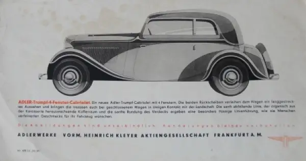 Adler Trumpf 1,7 Liter Modellprogramm 1934 Reuters Motive Automobilprospekt (6544)
