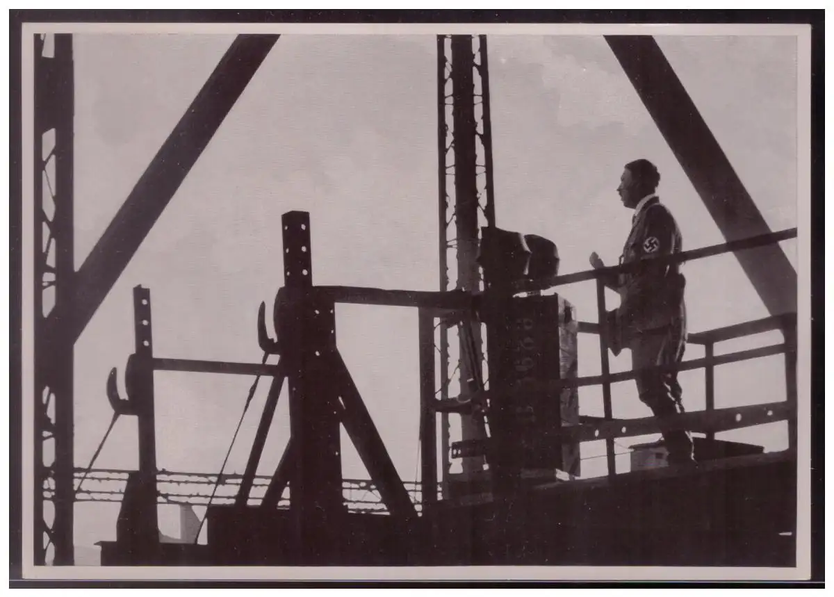 Freie Beschreibung: DT- Reich (008229) Propaganda Sammelbild "Adolf Hitler" Bild 32, Rede an die Belegschaft bei Blohm und Voss