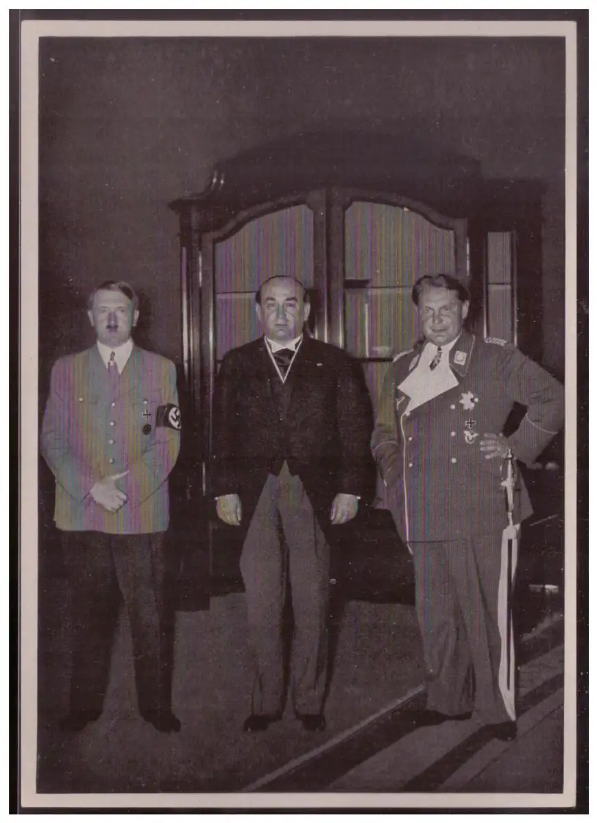 Freie Beschreibung: DT- Reich (008280) Propaganda Sammelbild Adolf Hitler Bild 61, Besuch in der Reichskanzlei (Ministerpräsident Gömbös)