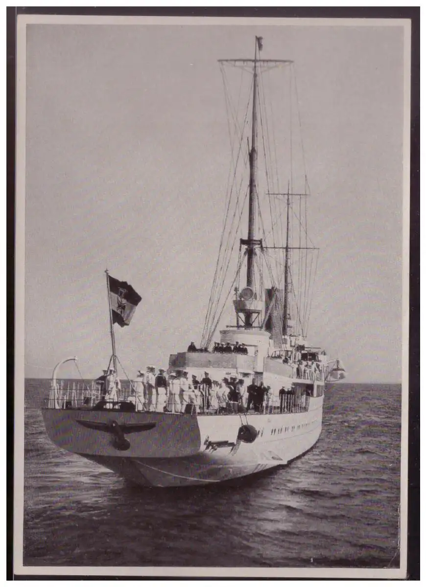 Freie Beschreibung: DT- Reich (008288) Propaganda Sammelbild "Adolf Hitler" Bild 161, Aviso Grille, ein neues Schiff der Kriegsmarine