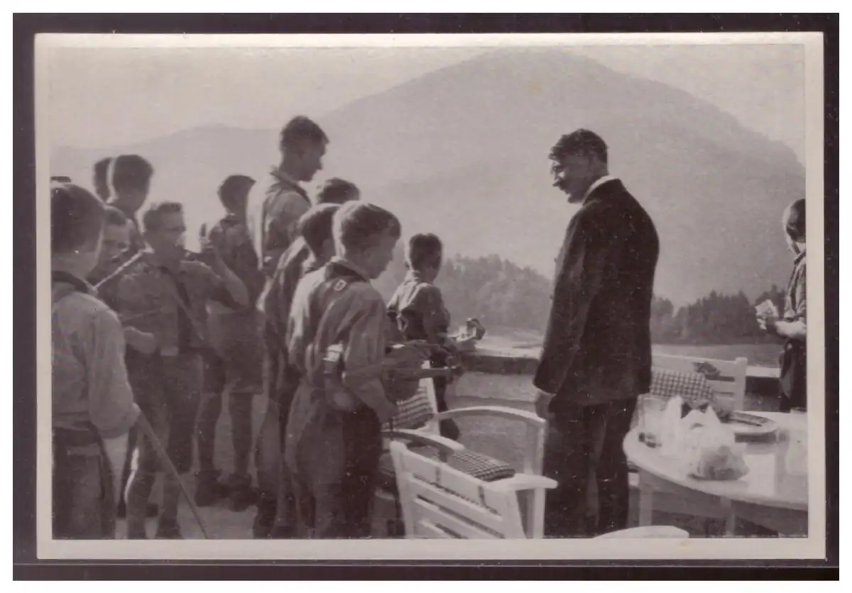 Freie Beschreibung: DT- Reich (008304) Propaganda Sammelbild Adolf Hitler"" Bild 168, Hitler- Jugend als Gast am Obersalzberg