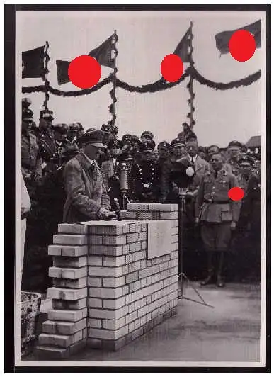 Freie Beschreibung: DT- Reich (008806) Propaganda Sammelbild Adolf Hitler Bild 81, Der Führer legt die Grundmauer zum Versammlungshaus