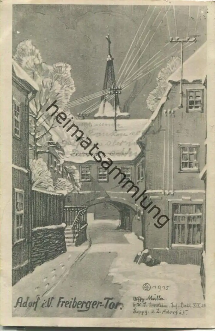 Adorf im Vogtland - Freiberger Tor - signiert Müller - Verlag Dr. Trenkler & Co Leipzig