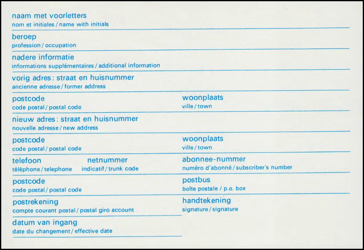 Adressenänderungskarte AÄK 42 POSTCODE 45 Cent, ungebraucht ** / MNH