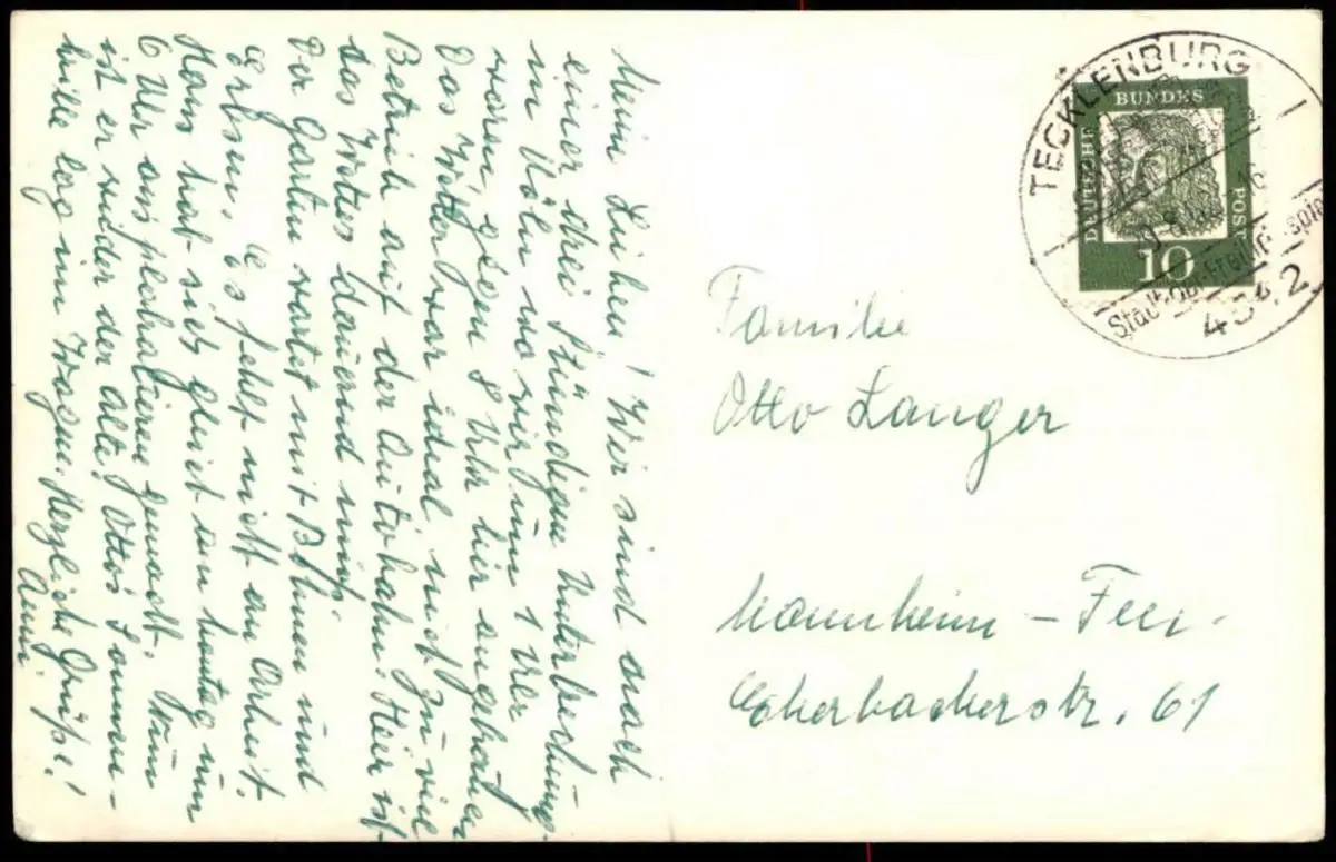 Gelaufen: 20.08.1962 mit Stempel Tecklenburg nach MannheimErhaltung (s. Scan): gut - sehr gut / 916002
