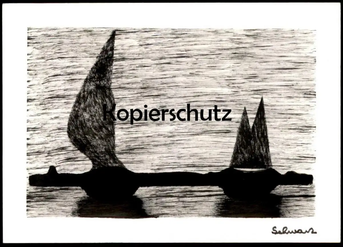 ÄLTERE KÜNSTLER POSTKARTE SEGELBOOTE BOOTE SEE MEER SCHWARZ LINOLSCHNITT Linol boat AK Ansichtskarte postcard cpa
