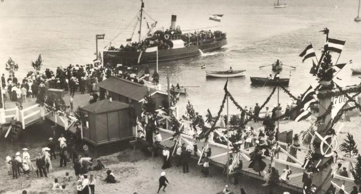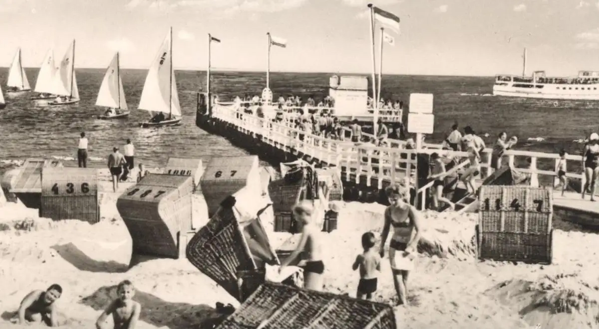 ÄLTERE POSTKARTE 150 JAHRE SEEBAD WYK AUF FÖHR DIE MITTELBRÜCKE UM 1900 UND 1969 Verlag: Schöning & Co., Lübeck