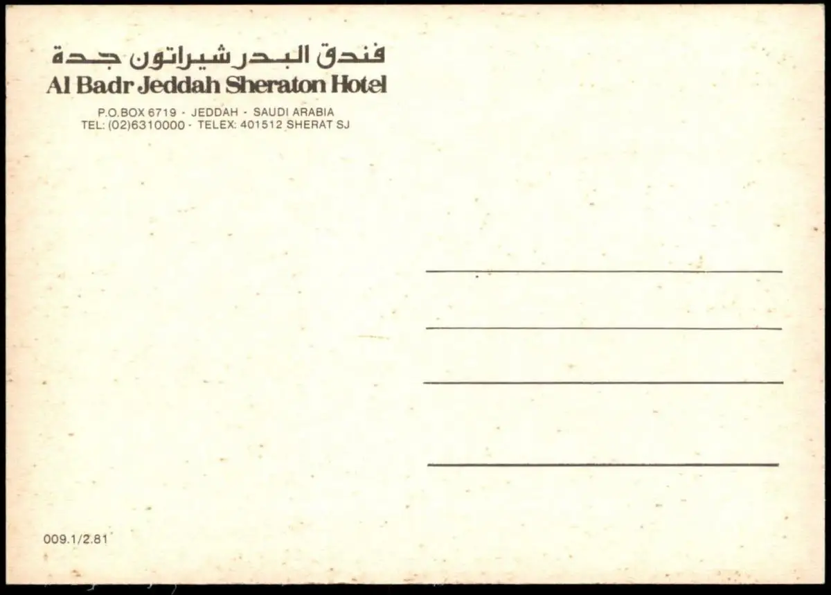 ÄLTERE POSTKARTE AL BADR JEDDAH SHERATON HOTEL Dschidda Jiddah Jedda Jidda Saudi-Arabien l'arabie saoudite Saudi Arabia