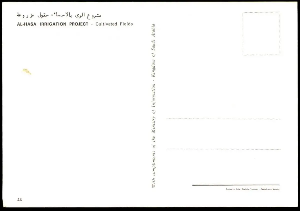 ÄLTERE POSTKARTE AL-HASA IRRIGATION PROJECT CULTIVATED FIELDS