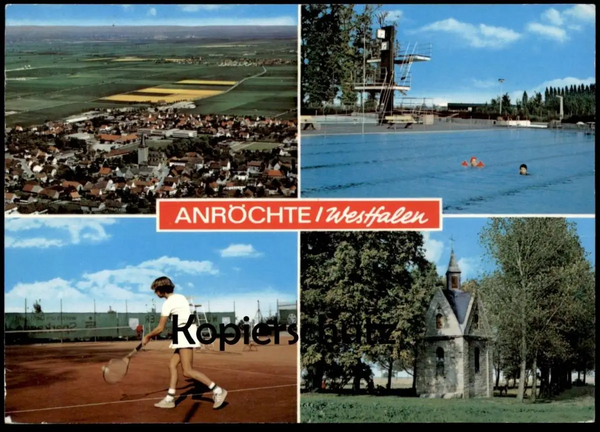 ÄLTERE POSTKARTE ANRÖCHTE PANORAMA TENNIS TENNISSPIELERIN SCHWIMMBAD TENNISPLATZ