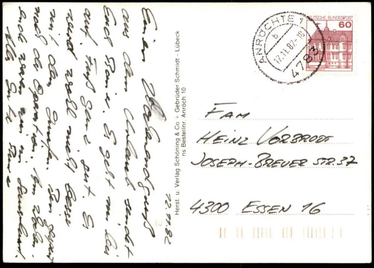 Gelaufen: 12.11.1987 mit Stempel Anröchte 1 nach EssenErhaltung (s. Scan): gut / 918373