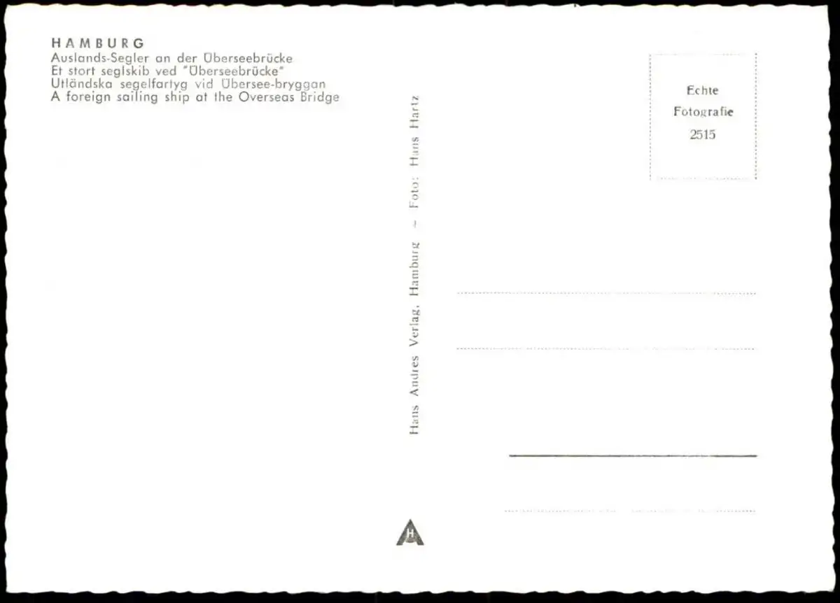 ÄLTERE POSTKARTE AUSLANDS-SEGLER SEGELSCHIFF HAFEN HAMBURG DREIMASTER SCHIFFVerlag: Hans Andres, Hamburg, Foto Hans Hartz