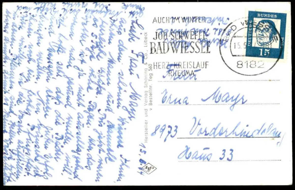 Gelaufen: 15.05.1964 mit Stempel Bad Wiessee nach Vorderhindelang