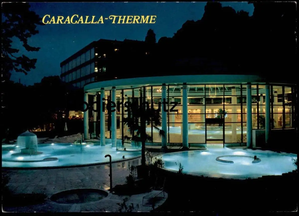 ÄLTERE POSTKARTE BADEN-BADEN CARACALLA-THERME bei Nacht by night nuit Piscine Swimming Pool Hallenbad Thermen Terme cpa