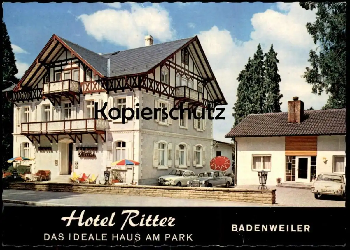 ÄLTERE POSTKARTE BADENWEILER HOTEL RITTER DAS IDEALE HAUS AM PARK ADAC SCHILD MERCEDES VW