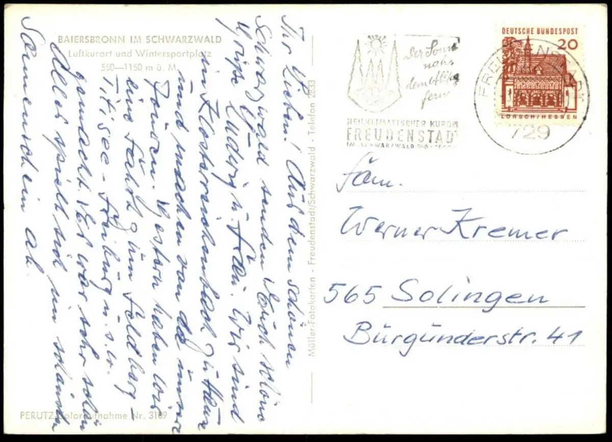 ALTE POSTKARTE BAIERSBRONN IM SCHWARZWALDVerlag: Müller- Fotokarten, FreudenstadtGelaufen: xx.xx.197x mit Stempel Freudenstadt nach SolingenErhaltung (s. Scan): gut, Ecken minimal bestoßen / 916254