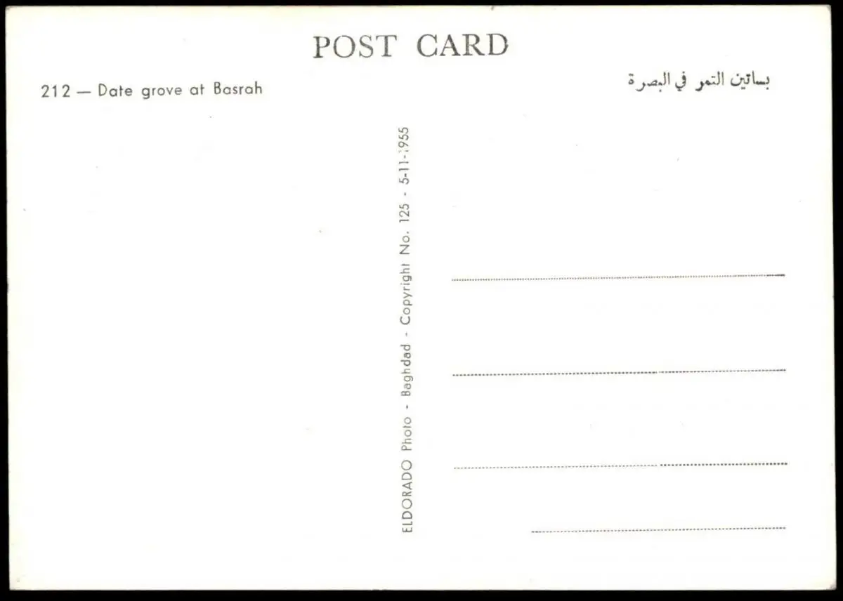 ÄLTERE POSTKARTE BASRAH DATE GROVEVerlag: Eldorado Phto, Baghdad
