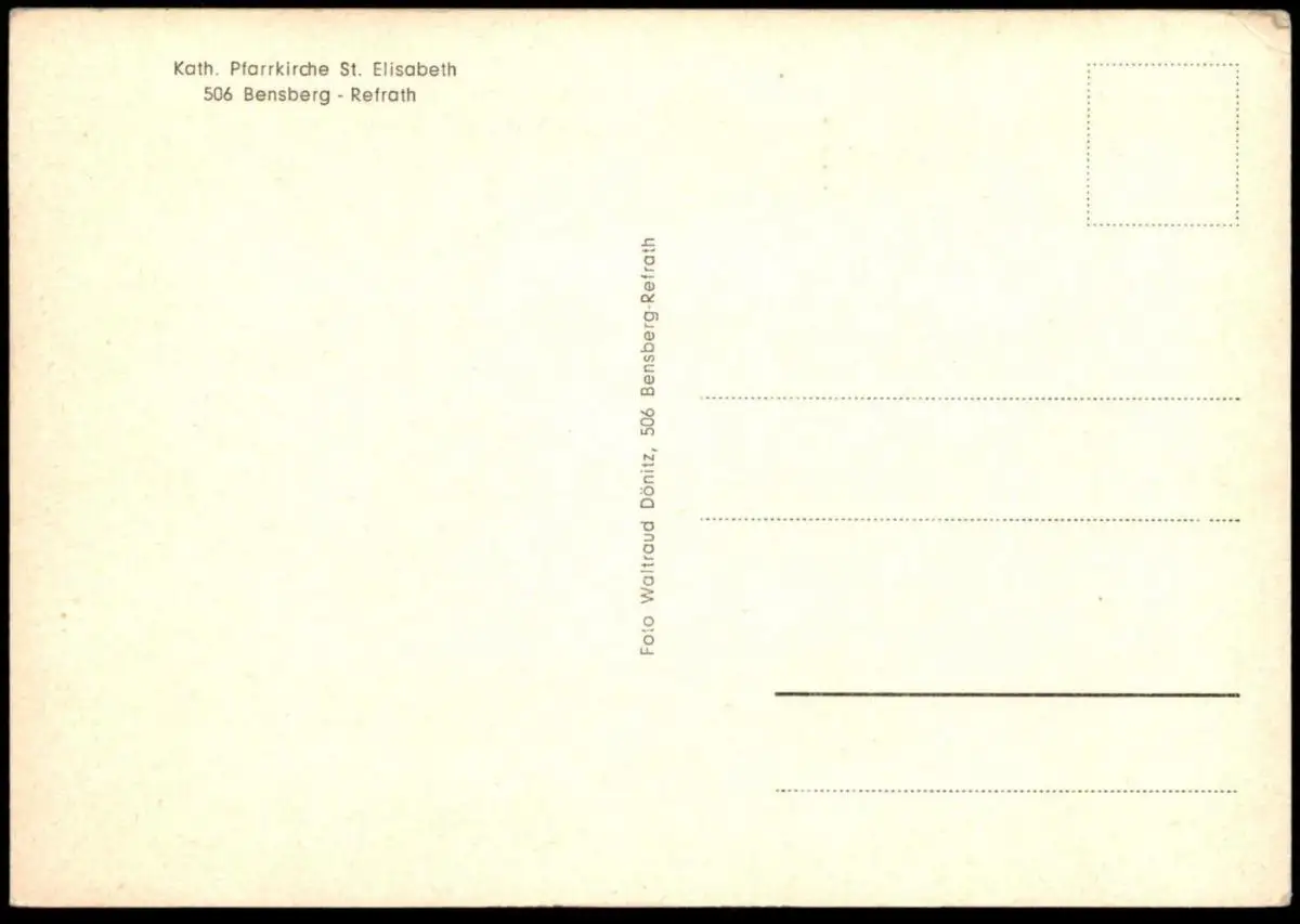 ÄLTERE POSTKARTE BENSBERG-REFRATH KATHOLISCHE PFARRKIRCHE ST. ELISABETHVerlag: Waltraud Dönitz, Bensberg-Refrath