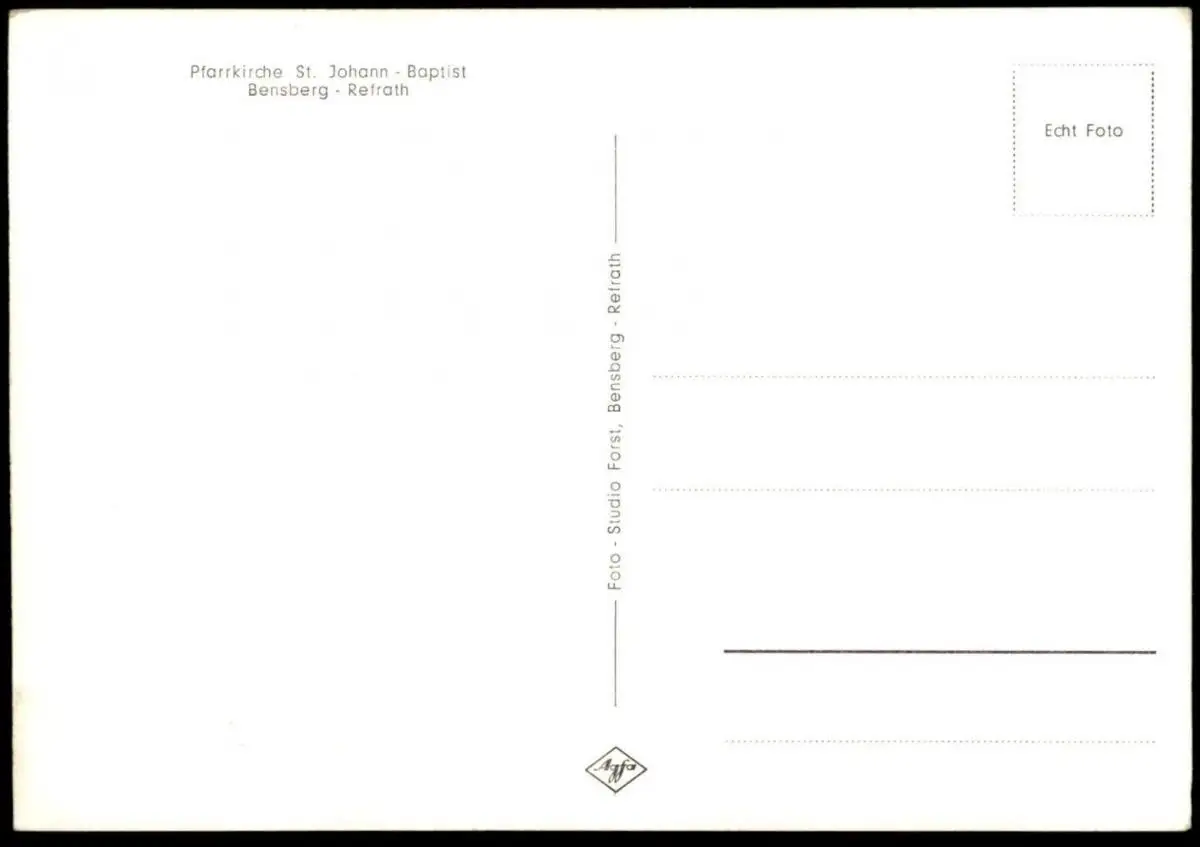 ÄLTERE POSTKARTE BENSBERG-REFRATH PFARRKIRCHE ST. JOHANN BAPTISTVerlag: Studio Forst, Bensberg-Refrath
