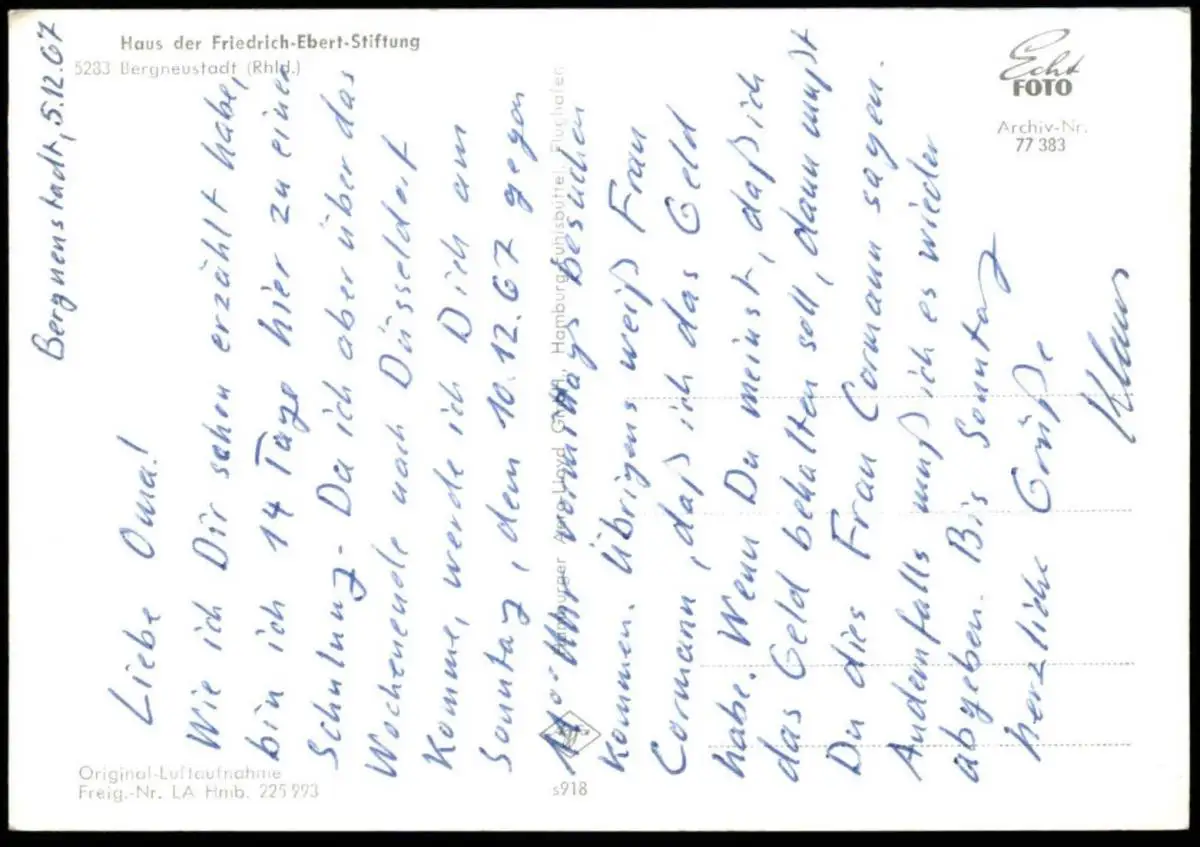 ÄLTERE POSTKARTE BERGNEUSTADT HAUS DER FRIEDRICH EBERT STIFTUNGVerlag: Aero Lloyd Hamburg Fuhlsbüttel