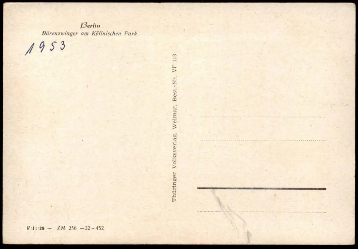 ÄLTERE POSTKARTE BERLIN BÄRENZWINGER KÖLLNISCHER PARK PROPAGANDA Es lebe das unbesiegbare Lager des Friedens der DemokratieVerlag: Thüringer Volksverlag, Weimar