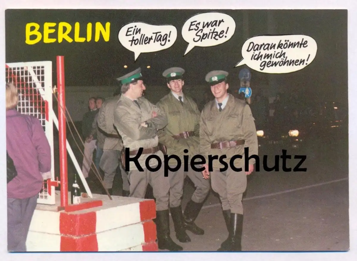 ÄLTERE POSTKARTE BERLIN BERLINER MAUER GRENZÖFFNUNG SOLDATEN GRENZER EIN TOLLER TAG LE MUR THE WALL Ansichtskarte cpa AK