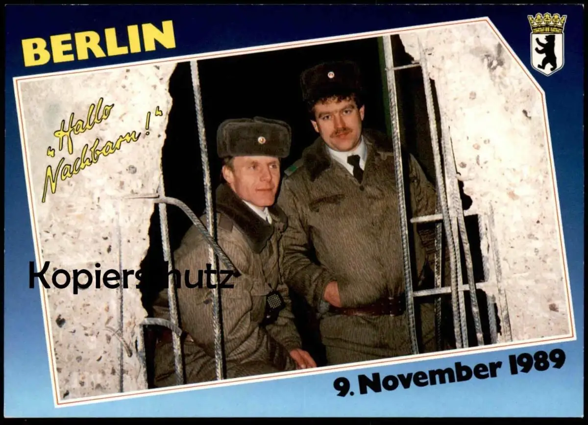 ÄLTERE POSTKARTE BERLIN BERLINER MAUER HALLO NACHBAR DDR GRENZER SOLDAT LE MUR THE WALL Ansichtskarte postcard