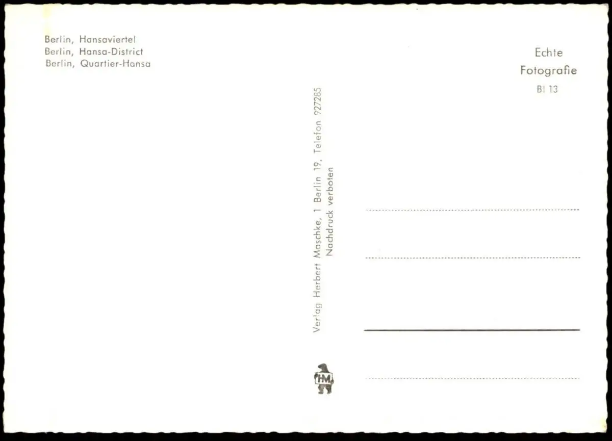 ÄLTERE POSTKARTE BERLIN HANSAVIERTELVerlag: Herbert Maschke, Berlin