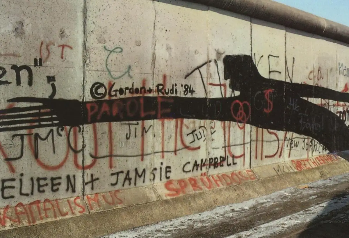 ÄLTERE POSTKARTE BERLINER MAUER THE WALL LE MUR BERLIN JIM JUDE GORDON + RUDI FOTO HERMANN WALDENBURG postcard