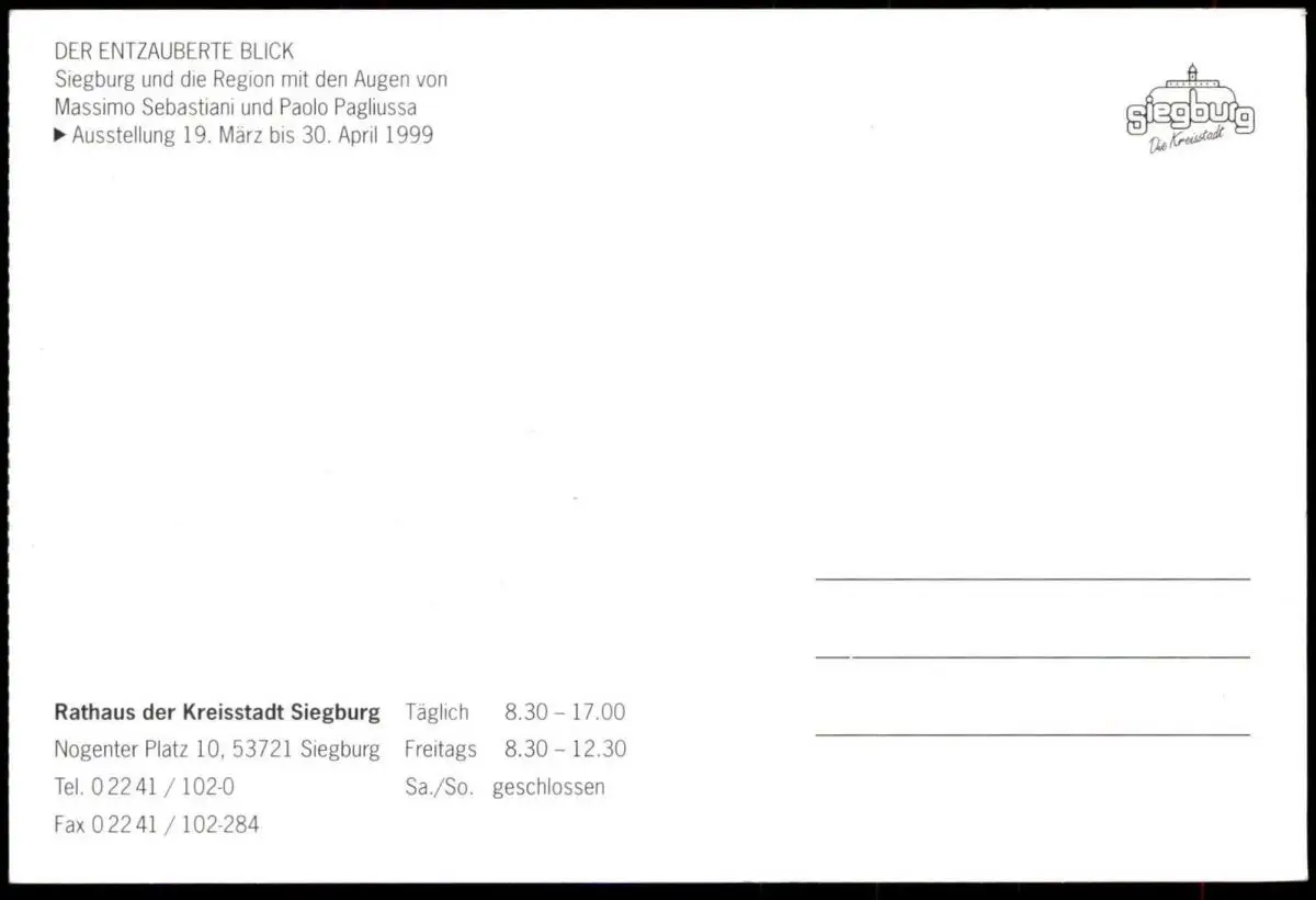 ÄLTERE POSTKARTE BONN UNIVERSITÄT SIEGBURG UND UMGEBUNG DER ENTZAUBERTE BLICK SEBASTIANI & PAGLIUSSA 1999Verlag: Rathaus der Kreisstadt Siegburg