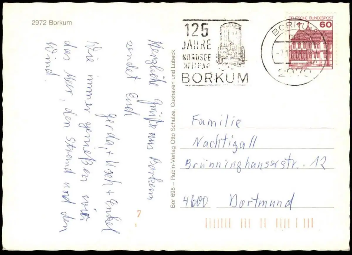 Verlag: Rubin, Otto Schulze, Cuxhaven und LübeckGelaufen: 07.11.1975 mit Stempel 125 Jahre Borkum nach DortmundErhaltung (s. Scan): gut / 917872