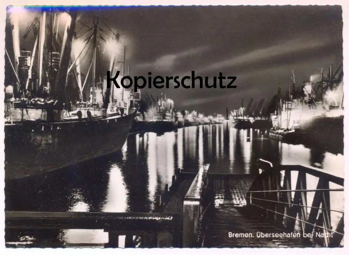 ÄLTERE POSTKARTE BREMEN ÜBERSEEHAFEN BEI NACHT SCHLEPPER Hafen harbour port Frachschiff cargo ship night nuit postcard
