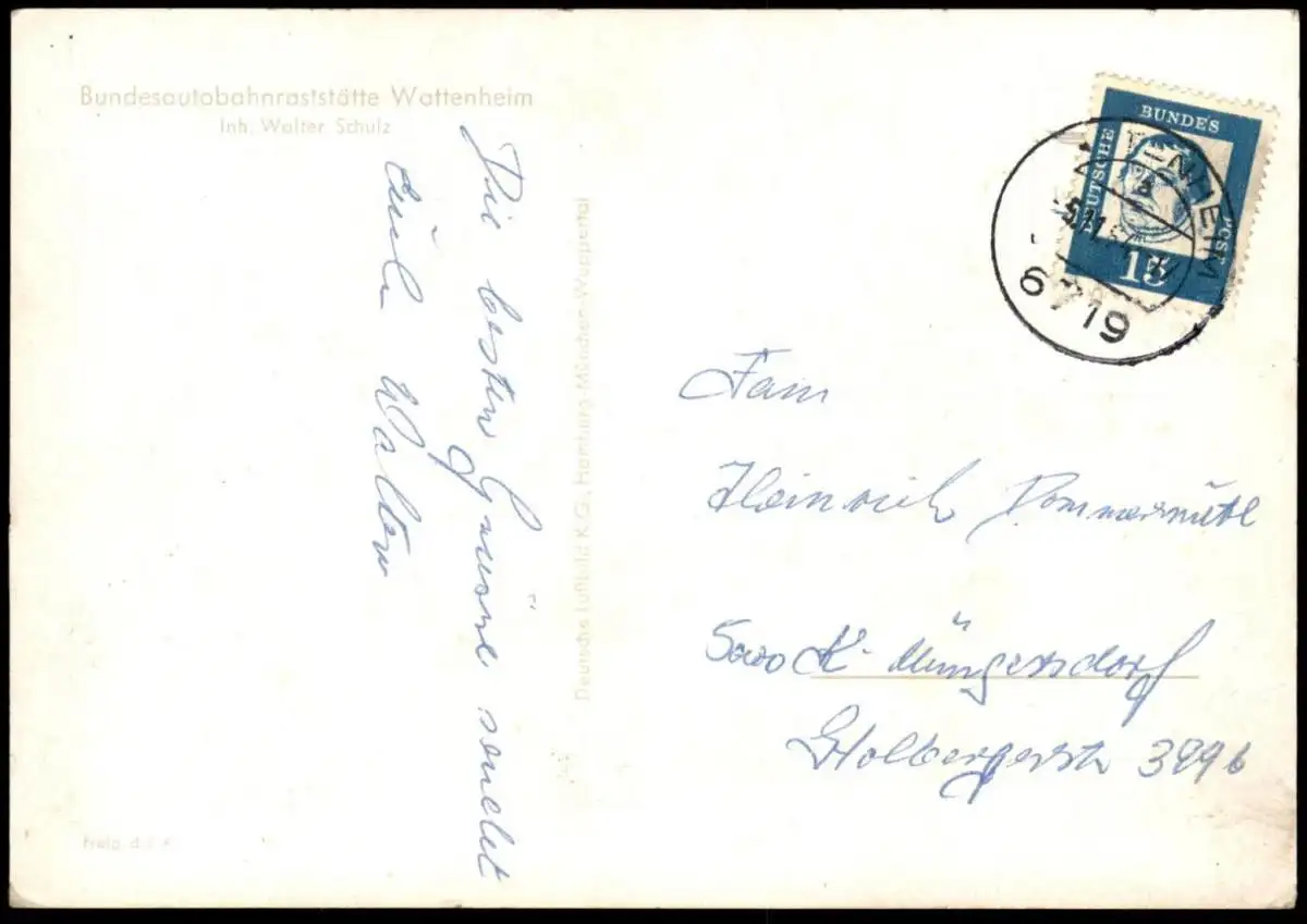 ÄLTERE POSTKARTE BUNDESAUTOBAHNRASTSTÄTTE WATTENHEIM LKW AUTOHOF RASTSTÄTTE AUTOBAHN-RASTHAUS highway motorway autoroute