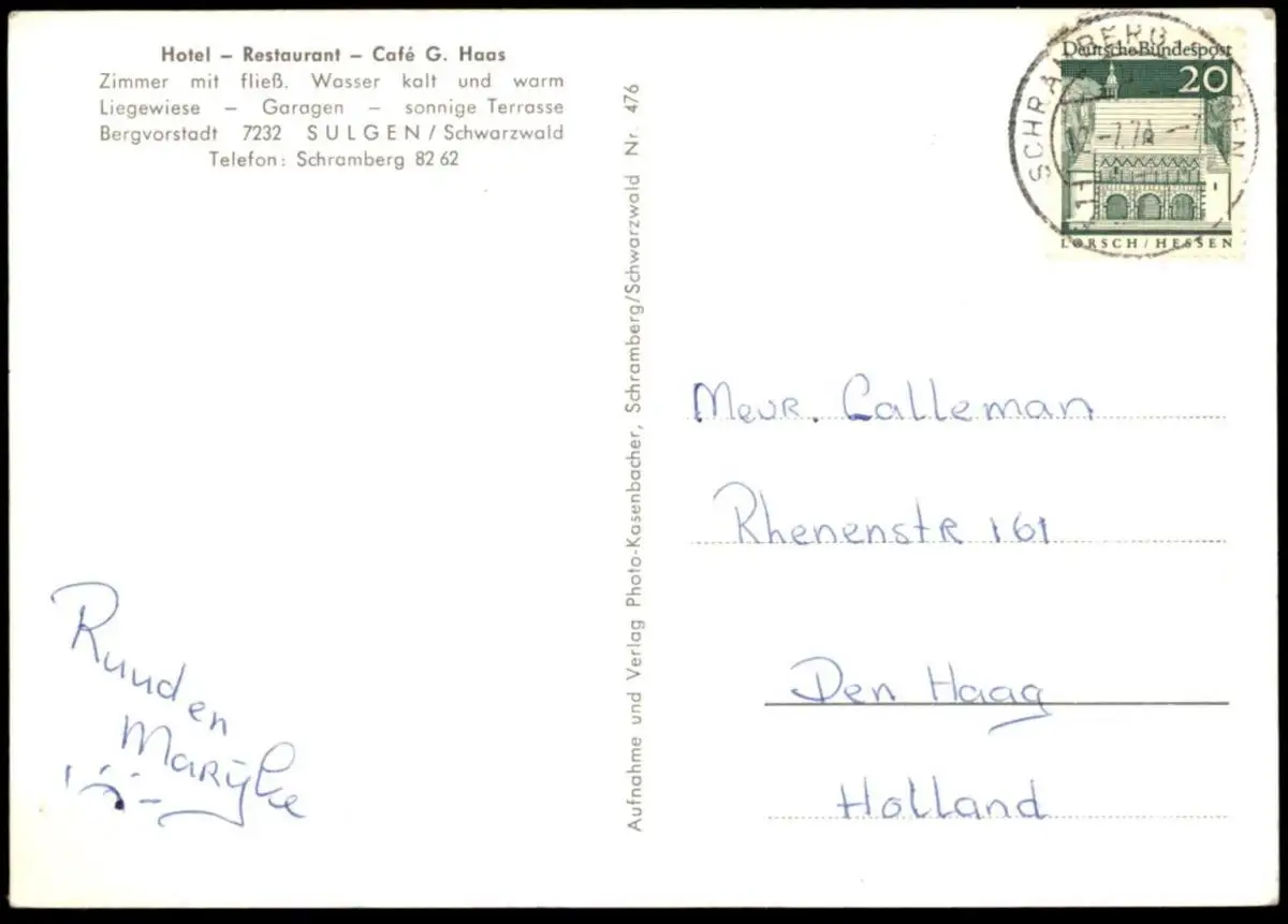 Gelaufen: 12.07.1971 mit Stempel Schramberg nach Den HaagErhaltung (s. Scan): gut - sehr gut / 915185