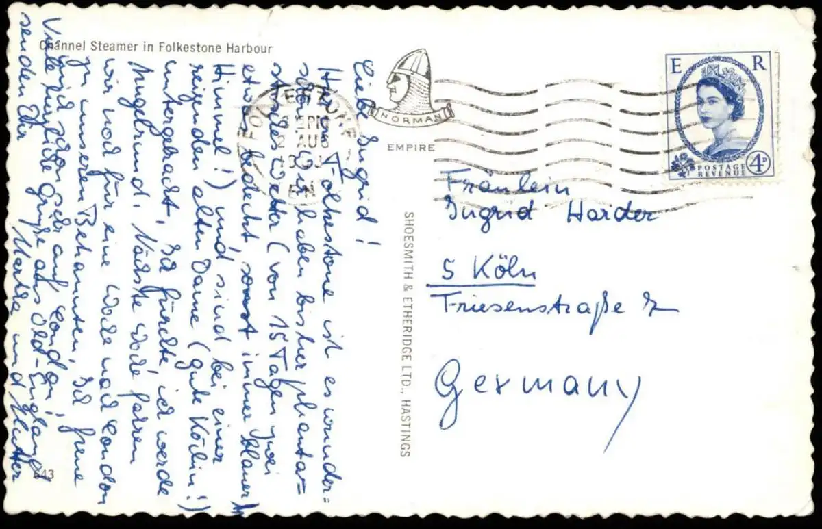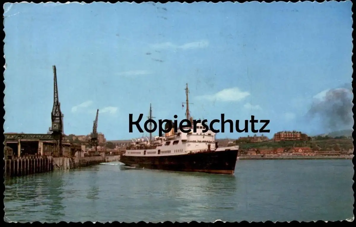 ÄLTERE POSTKARTE CHANNEL STEAMER IN FOLKESTONE HARBOUR HAFEN PUERTO DAMPFERVerlag: Shoesmith & Etheridge Ltd., HastingsGelaufen: 02.04.1953 mit Stempel Folkestone nach KölnErhaltung (s. Scan): gut, linke obere Ecke minimal bestoßen / 918683