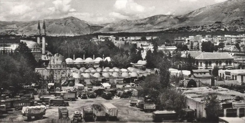 ÄLTERE POSTKARTE DAMAS PANORAMA LKW pickup truck trucks camion cars Damascus Syrie Syria Syrien Damaskus cpa postcard AK