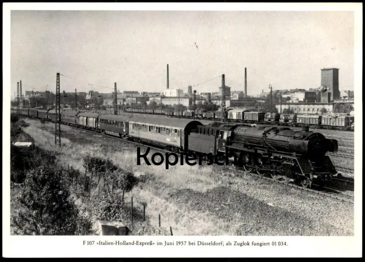 ÄLTERE POSTKARTE DAMPFLOK F107 ITALIEN-HOLLAND-EXPRESS JUNI 1957 BEI DÜSSELDORFVerlag: Eisenbahn-Kurier, Freiburg, Serie Dampf-Fernschnellzüge