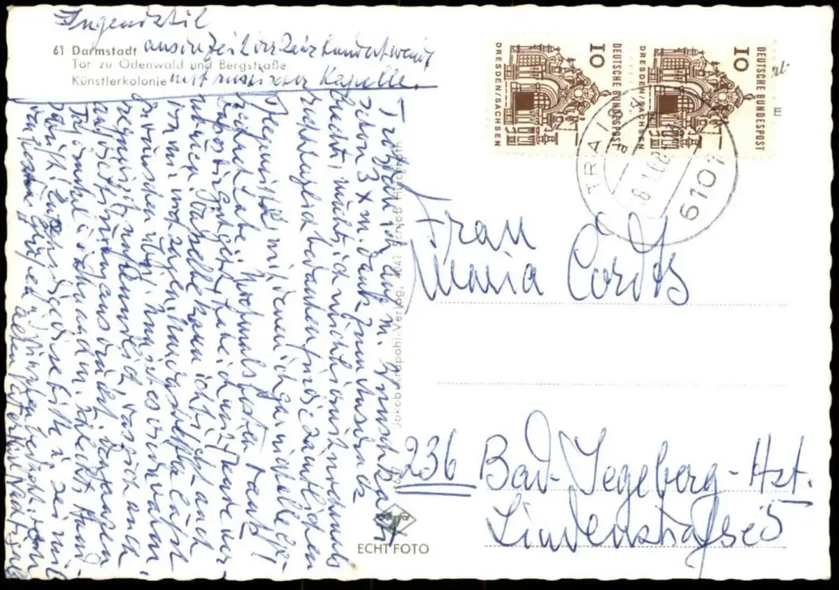 Gelaufen: 18.01.1968 mit Stempel Traisa nach Bad Segeberg