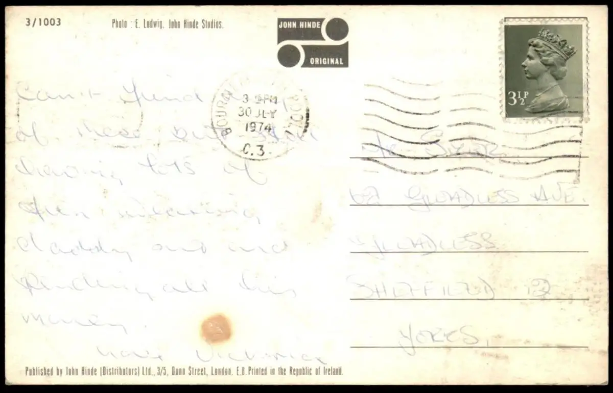 Gelaufen: 30.07.1974 mit Stempel Bournemouth nach Sheffield